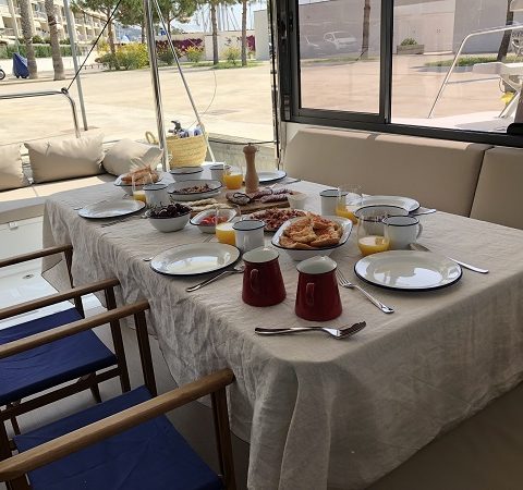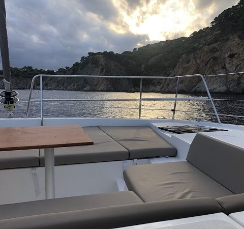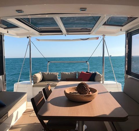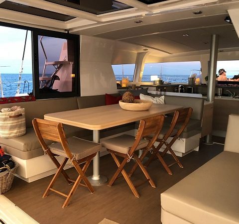 - Sala dentro de un barco en un catamaran totalmente nuevo.