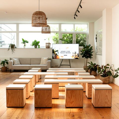 Entdecke den Nido Workspace – ein flexibler, inspirierender Tagungsraum in Düsseldorf auf über 200m². Mit einer warmen Atmosphäre aus Holz- und Naturtönen ist der Raum ideal für Offsites, Konferenzen, Tagungen und Seminare.
