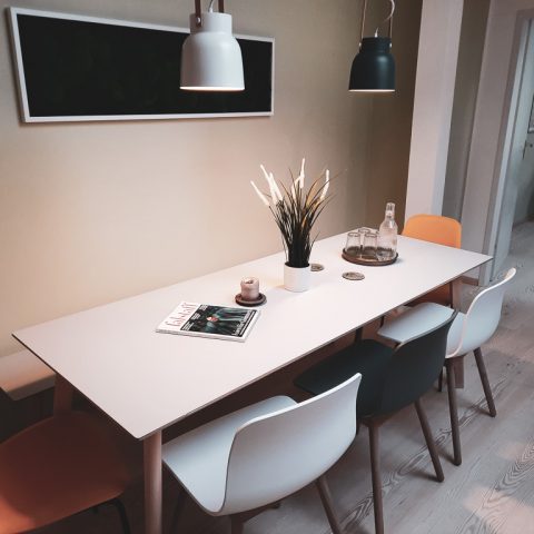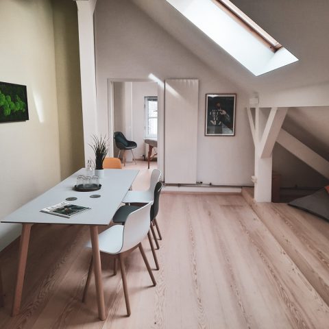 Unser Kleinster bietet Raum für Großes. Viel Raum für neue Ideen und gute Ergebnisse. Für entspanntes und konzentriertes Arbeiten. Für Coachings, Supervisionen und Besprechungen zu zweit und in kleinen Gruppen. Im Herzen von Haidhausen, mitten in München. Die neu renovierte, ca. 35 Quadratmeter große Meeting-Suite bietet bis zu 8 Personen Platz.