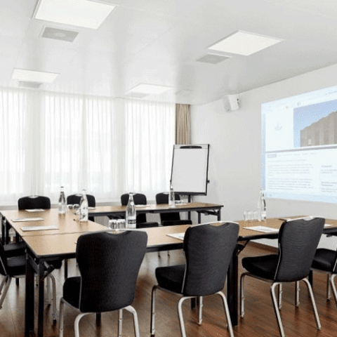 Kongressbereich mit 17 flexiblen, hervorragend ausgestatteten und klimatisierten Seminarräumen für 4 bis 480 Personen, neuste Technik wie Visualizer, Simultanübersetzungsanlage und Deckenbeamer mit TVAnschluss verfügbar.
