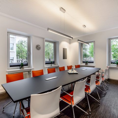 Der lichtdurchflutete Konferenzraum überzeugt nicht nur durch seine zentrale Lage, sondern auch durch ein hochwertiges, stimmiges Interieur mit Design-Möbeln und modernster technischer Ausstattung – inklusive Beamer, Präsentationsmaterialien, Highspeed-WLAN und vielem mehr. Hier treffen Funktionalität und Ästhetik aufeinander und schaffen eine professionelle Umgebung für produktives Arbeiten.