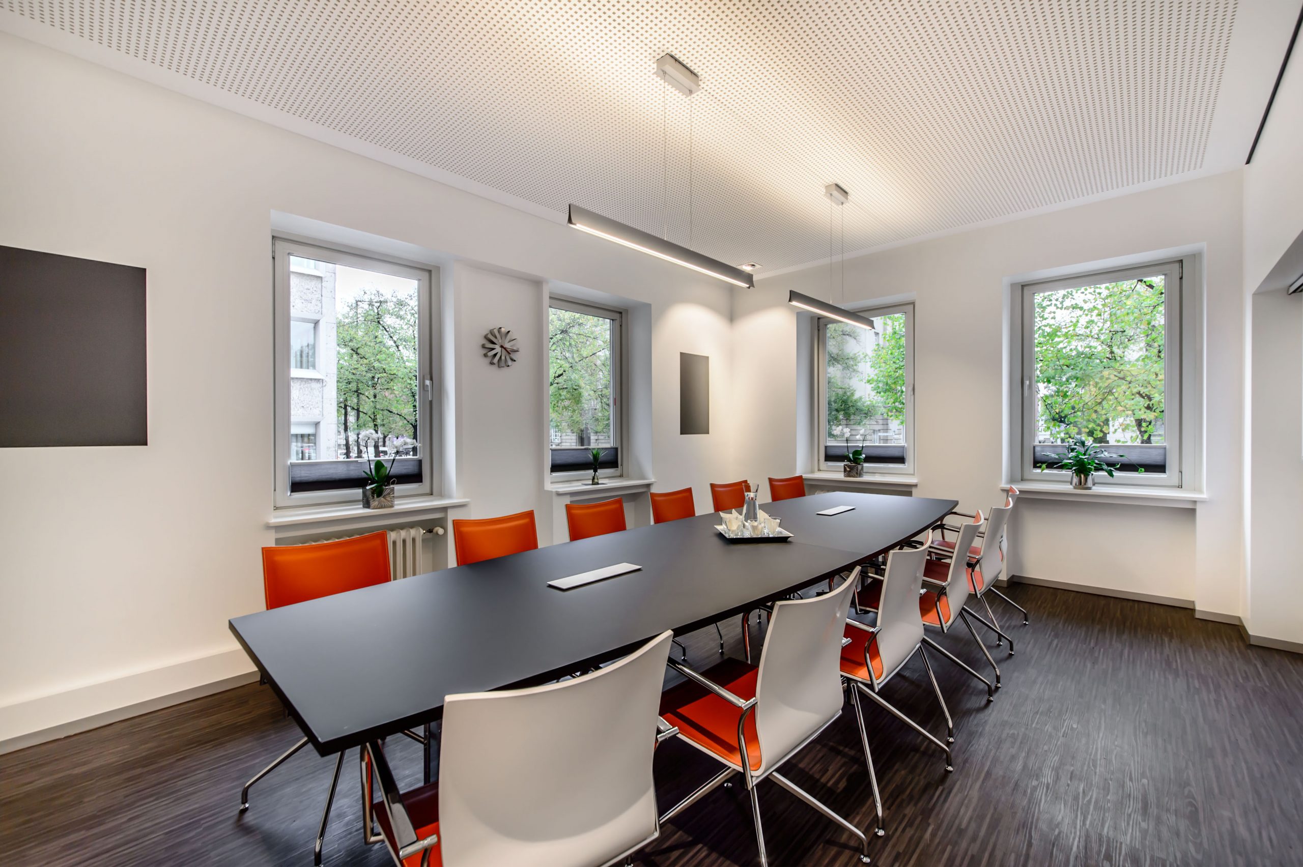 Der lichtdurchflutete Konferenzraum überzeugt nicht nur durch seine zentrale Lage, sondern auch durch ein hochwertiges, stimmiges Interieur mit Design-Möbeln und modernster technischer Ausstattung – inklusive Beamer, Präsentationsmaterialien, Highspeed-WLAN und vielem mehr. Hier treffen Funktionalität und Ästhetik aufeinander und schaffen eine professionelle Umgebung für produktives Arbeiten.