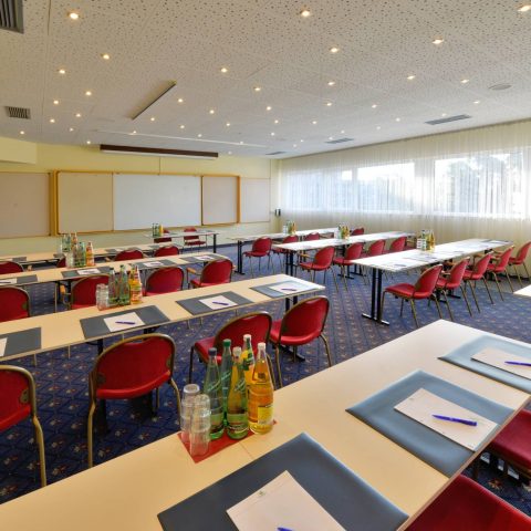 Die Hotelzimmer sind alle gleich groß und bieten auf ca. 35 m² viel Platz, um den Tag nach einer anstrengenden Veranstaltung ausklingen zu lassen. Sie verfügen über Bad/WC, 2 Betten, Sitzecke, TV, Schreibtisch, Balkon oder Terrasse sowie einen Kühlschrank und verteilen sich auf 3 miteinander verbundene Gebäude. In allen Zimmern ist WLAN verfügbar.